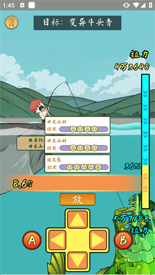 3、当遭遇高等级或稀有鱼类时,系统将自动进入技能释放阶段,此时需根据屏幕提示选择对应招式完成对抗。