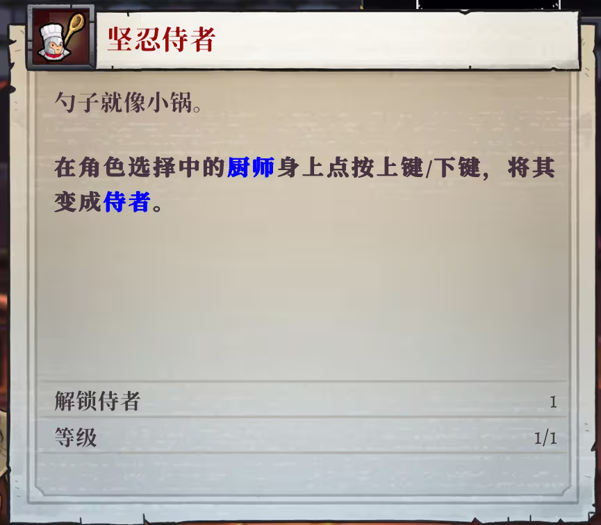 厨师 → 坚韧侍者:武器为一袋勺子。可瞄准发射,击中墙面或敌人后弹跳一次,弹跳后造成暴击并附加智慧加成。虽具备弹射机制,但相比原版平底锅可反弹敌方弹幕的核心优势,进阶武器功能性大幅削弱。