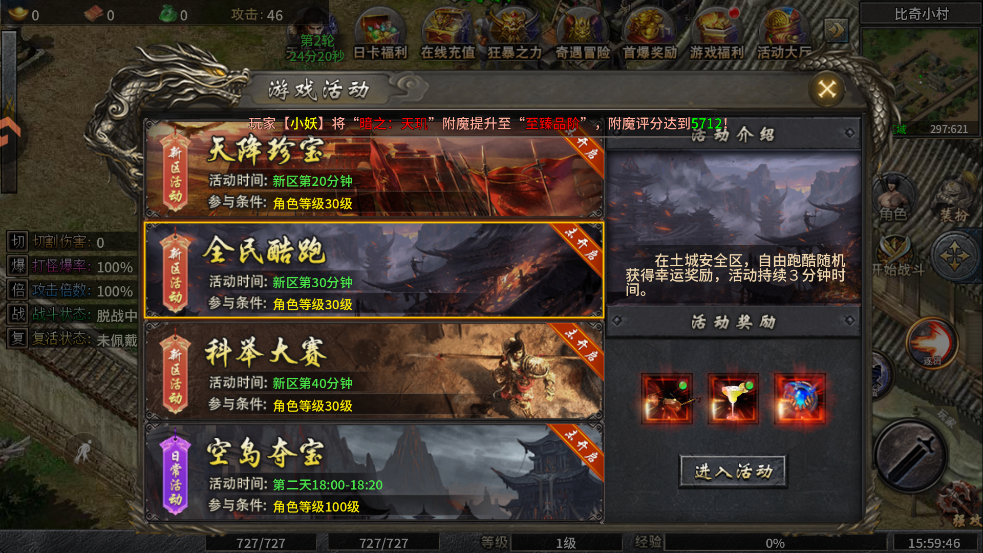 在土城安全区内参与跑酷挑战,随机获取幸运奖励,活动持续3分钟。