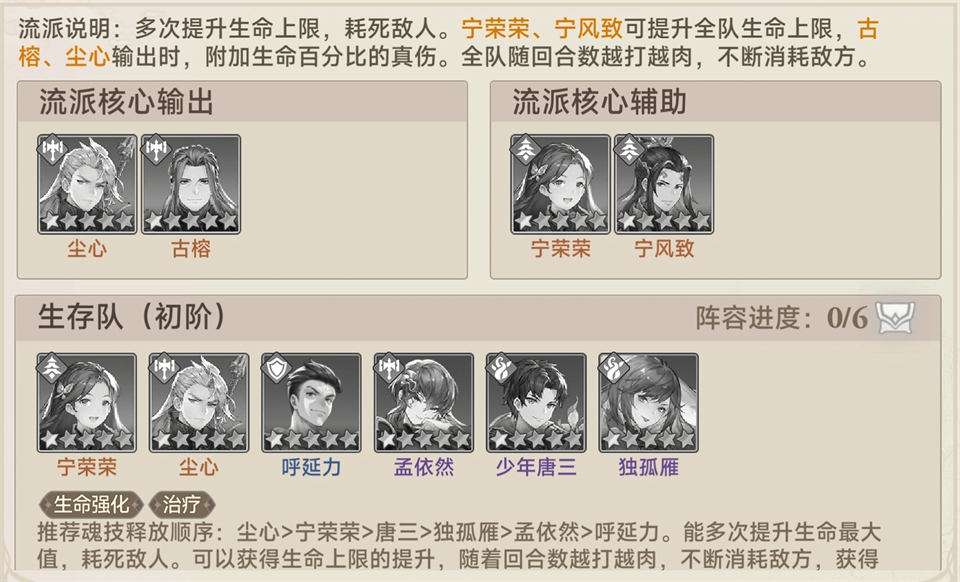 核心辅助:宁荣荣、宁风致(大幅提升全队生命上限)