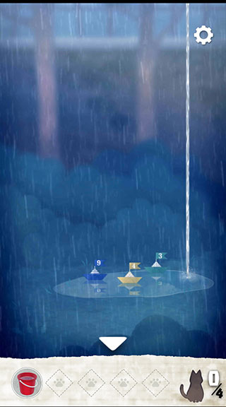 2、在下方界面中获取红色水桶;随后在道具栏中选中水桶,将其放置于滴水处装满水。同时注意观察小船的颜色及旁边显示的数字,后续将用到该信息。