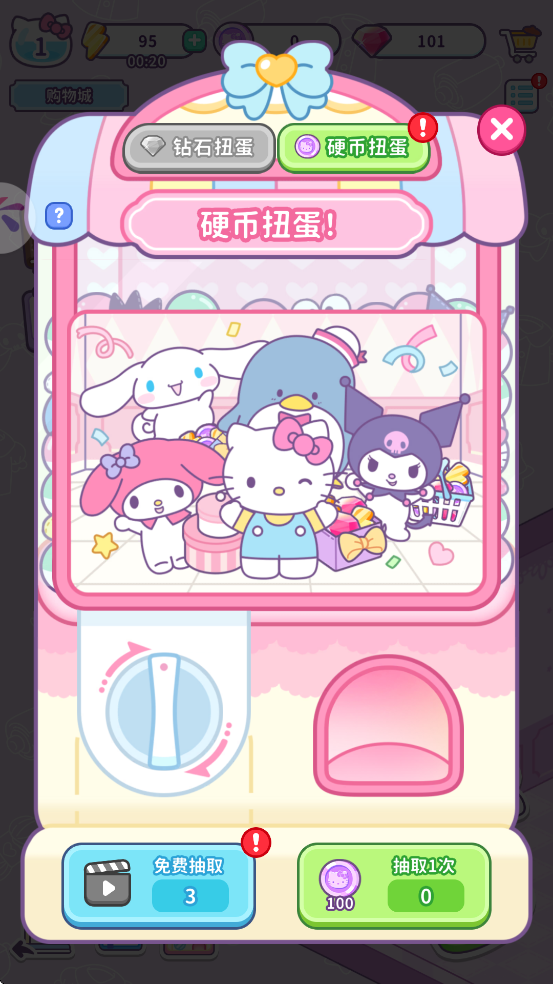 - 可自由装饰并扩展以三丽鸥人气角色为主题的个性化店铺。