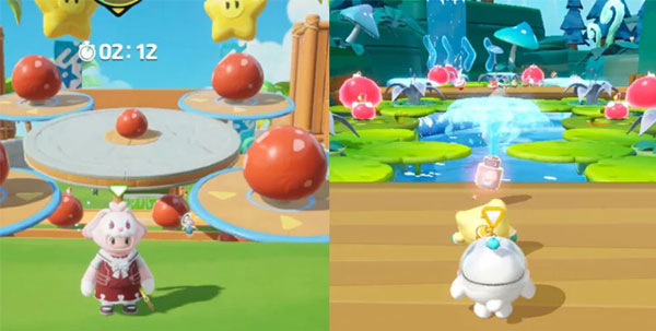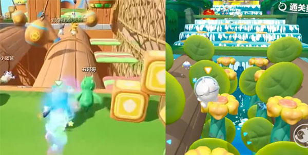 地图中遍布会随机放大缩小的弹性蘑菇,触碰后可将玩家弹射至空中,结合旋转平台形成复合式机关。这一设计既具趣味性,也对空中调整能力提出更高要求。
