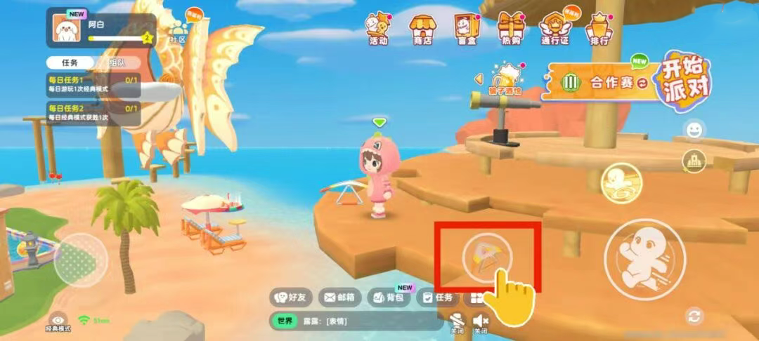 1. 前往浪漫海岛,找到观景台(需通过跳梅花桩抵达顶部)。