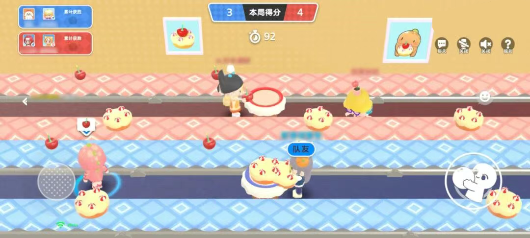 - 开局迅速确认自己负责的物品类型:樱桃出现在上方传送带,蛋糕则从下方传送带送出,提前移动至对应位置准备接应。