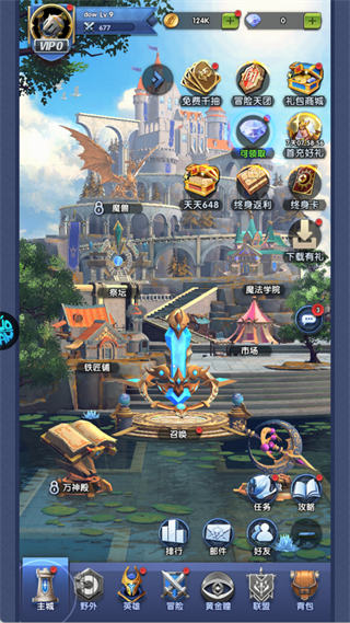 主城是每日资源获取的关键区域。务必每日点击【免费千抽】【终身返利】【下载有礼】等入口,领取额外钻石、代金券与英雄碎片。中后期积极参与联盟BOSS与联盟战,将获得大量高价值资源,助力战力飞跃。