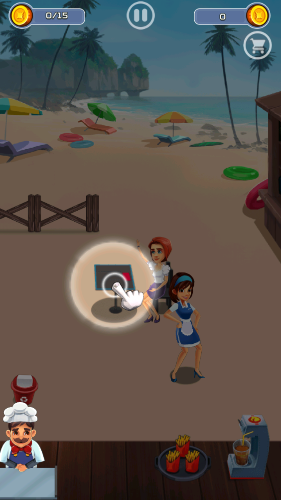 1. 安装游戏后,点击桌面上的空位,顾客便会入座并开始点餐;