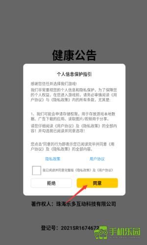 1、进入游戏后,点击黄色“同意”按钮,确认隐私政策即可开启你的熊猫餐厅之旅。