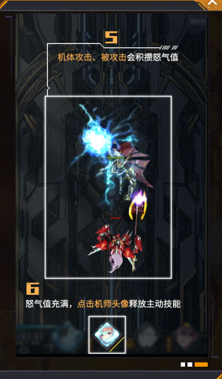 3、每台机体均拥有能量槽,当能量蓄满后,点击屏幕下方对应机师头像即可释放强力必杀技!