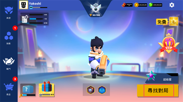 在主界面确认当前拥有的英雄、等级及资源后,点击“寻找对局”,即可快速匹配进入3v3或其他模式,开启一场4分钟的高强度对决。