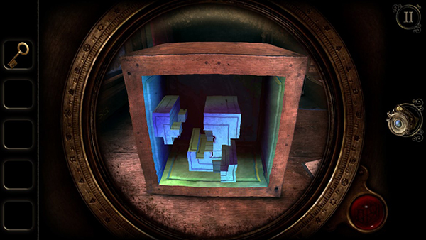 拼图完成后,使用先前获得的钥匙打开木盒,取得内部的神秘三角体。
