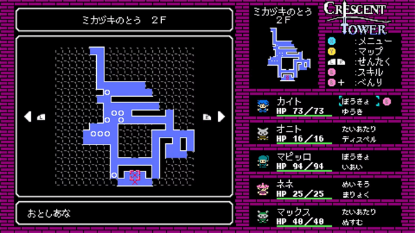 新月之塔手机版(Crescent Tower)是一款从Switch平台移植而来的硬核迷宫探索RPG,专为怀旧红白机时代的玩家及RPG爱好者打造。游戏以浓郁的8位机像素风格,重现昔日冒险情怀。传说中每隔50年才在王都·梅尔多姆显现一次的新月塔,从未有人成功登顶。