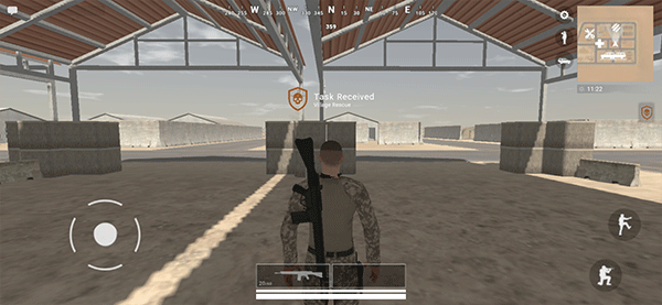 4. 游戏中,角色移动通过左下角虚拟摇杆控制,点击右侧枪械图标即可开火攻击敌人。