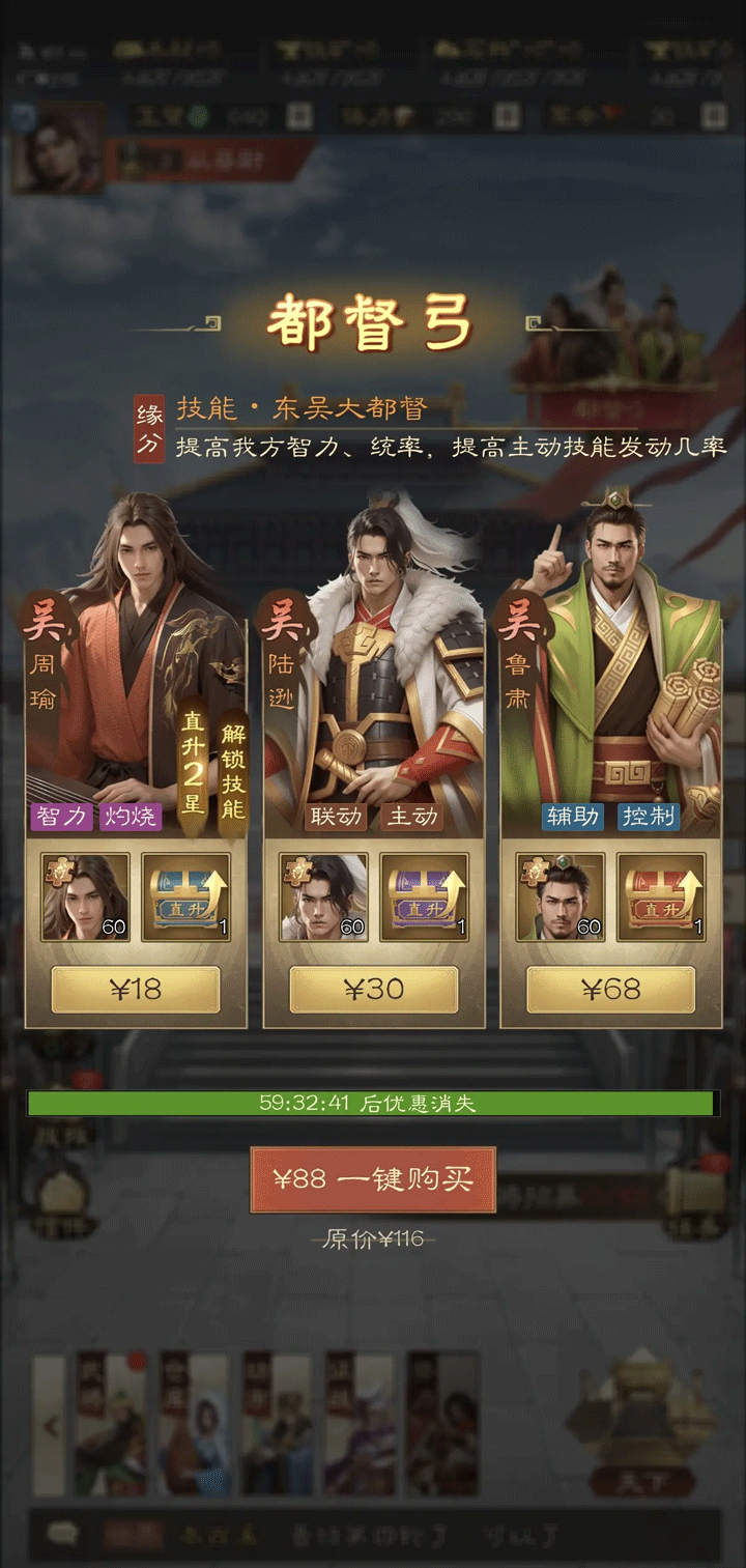 武将主要通过策勋卷与礼爵卷招募,升星则高度依赖同名碎片,因此两类招募资源前期尤为珍贵。建议尽早确定主力方向,集中资源培养少数核心武将,避免分散投入。