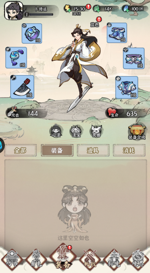 6、游戏内装备体系完善,共分六类:戒指、饰品、宝剑、鞋子、腰带与道袍,每类均对角色属性产生独特加成。
