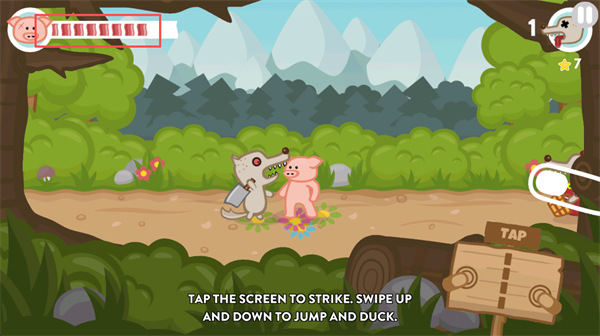 左上角显示的“培根条”即为角色生命值,每次受击会减少一格。在积极进攻的同时,务必留意血量变化,适时防御或躲避,以维持生存能力。