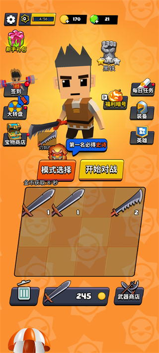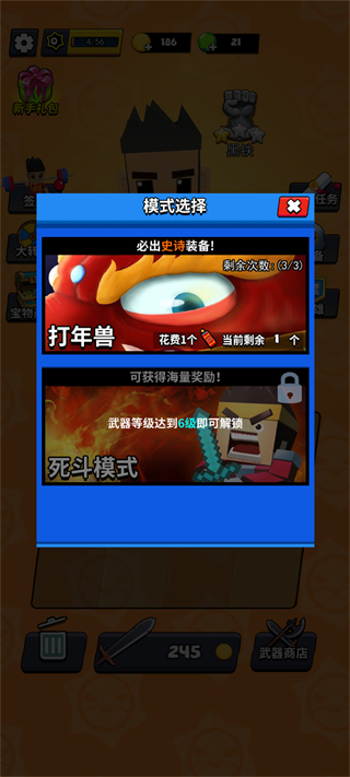 1. 启动我这一刀下去官方正版后,首先进入【模式选择】界面。当前开放【打年兽】与【死斗】两种玩法,其中【死斗模式】需武器等级达到6级方可解锁。