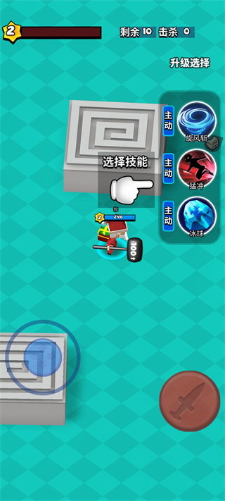 5. 技能升级时,系统将提供旋风斩、猛冲等强力主动技能供选择。选定后可显著强化输出或机动能力,大幅提升击杀效率。