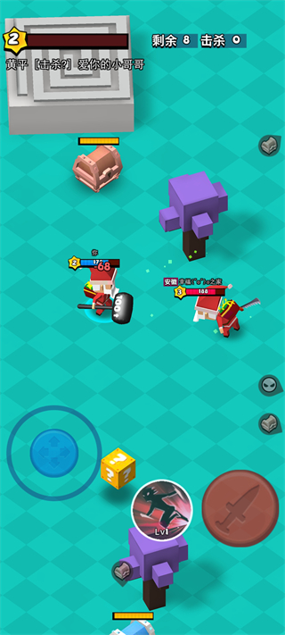 6. 对战过程中既可主动攻击其他玩家,也可开启地图中的宝箱获取增益道具。特别注意【问号宝箱】,有概率开出稀有随机技能或额外资源。