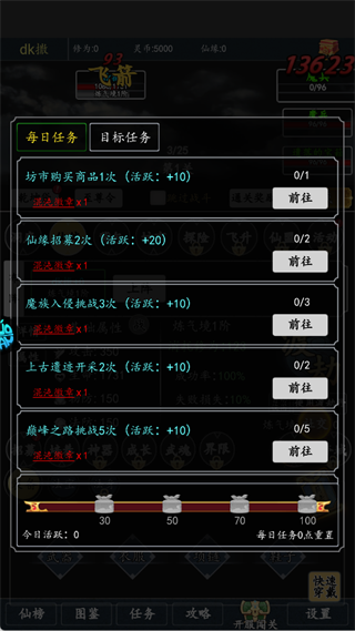 完成每日任务可获得活跃值与混沌徽章。当活跃值累积至指定档位,即可解锁对应奖励,是日常稳定获取修为、灵币等关键资源的重要渠道,建议每日优先完成。