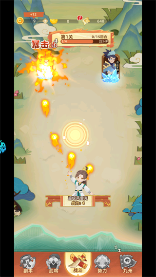 1、游戏初期以点击屏幕攻击敌人为核心操作,通过手动点击积累伤害推进关卡。虽前期略显重复,但随着武将阵容成型,后期可实现全自动挂机闯关,大幅提升效率。