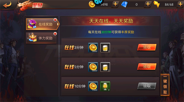 2、在线轻松领资源:挂机达标即可领取金币与体力,刷图推进毫无负担。
