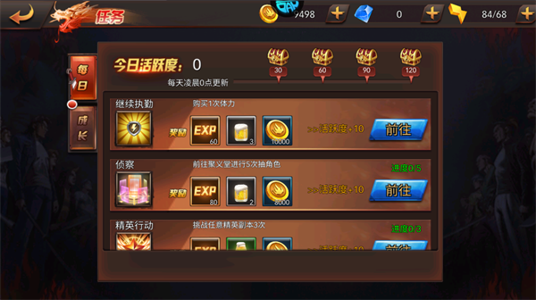 完成活跃度任务链,稳定领取经验、体力与金币,保障每日角色等级稳步提升。
