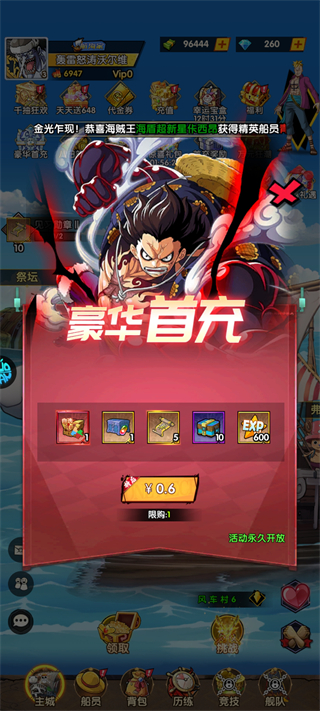 5、双重特权加持成长:专属航海特权与尼卡特权同步生效,助你一路高歌猛进,直指海贼王宝座!