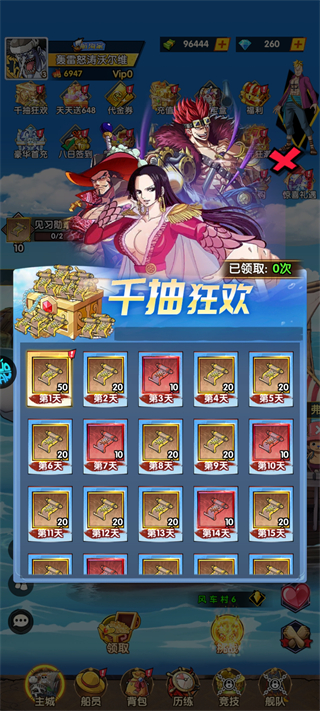 3、千抽狂欢盛宴开启:累计可享超1000连抽,任选绝品船员,战力飙升,轻松称霸大海!