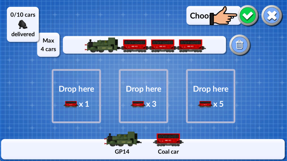 5. 轨道铺设完成后,点击火车图标以添加新列车。