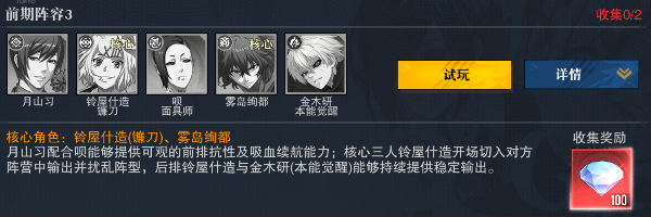 阵容组成:月山习 + 野吕井 + 雾岛绚都 + 铃屋什造镰刀 + 金木研本能觉醒