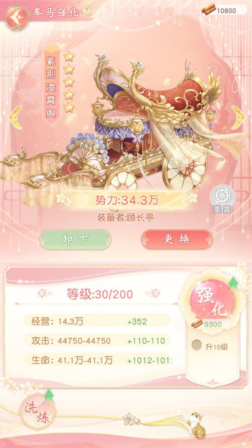 - 座驾强化至30级后解锁洗练功能,直接提升百分比属性,显著增强伙伴势力值;