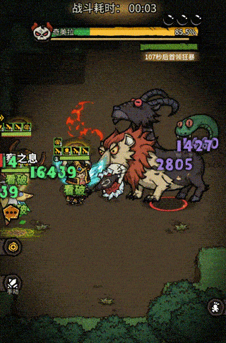 在「虚弱状态」下,敌方会缓慢恢复「韧性值」。玩家必须在韧性回满前,及时点击亮起的「破韧一击」按钮,打出高额爆发伤害,最大化输出收益。