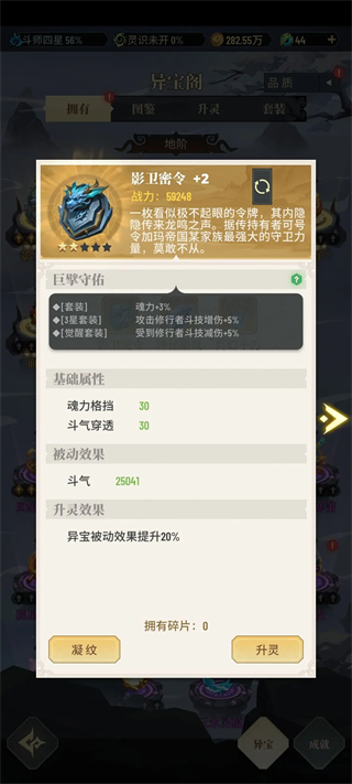 7、若主修斗气路线,优先激活与斗气属性相关的异宝;其他类型异宝可待后期资源充裕后再逐步补全。