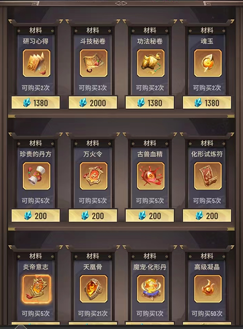 1、秘药和古龙香属于前期必购道具,建议用玉石刷新商店1–2次获取;但后续价格飙升,非氪金玩家不建议频繁购买。注意:每次大境界突破后,商店将自动刷新,可再次抢购。
