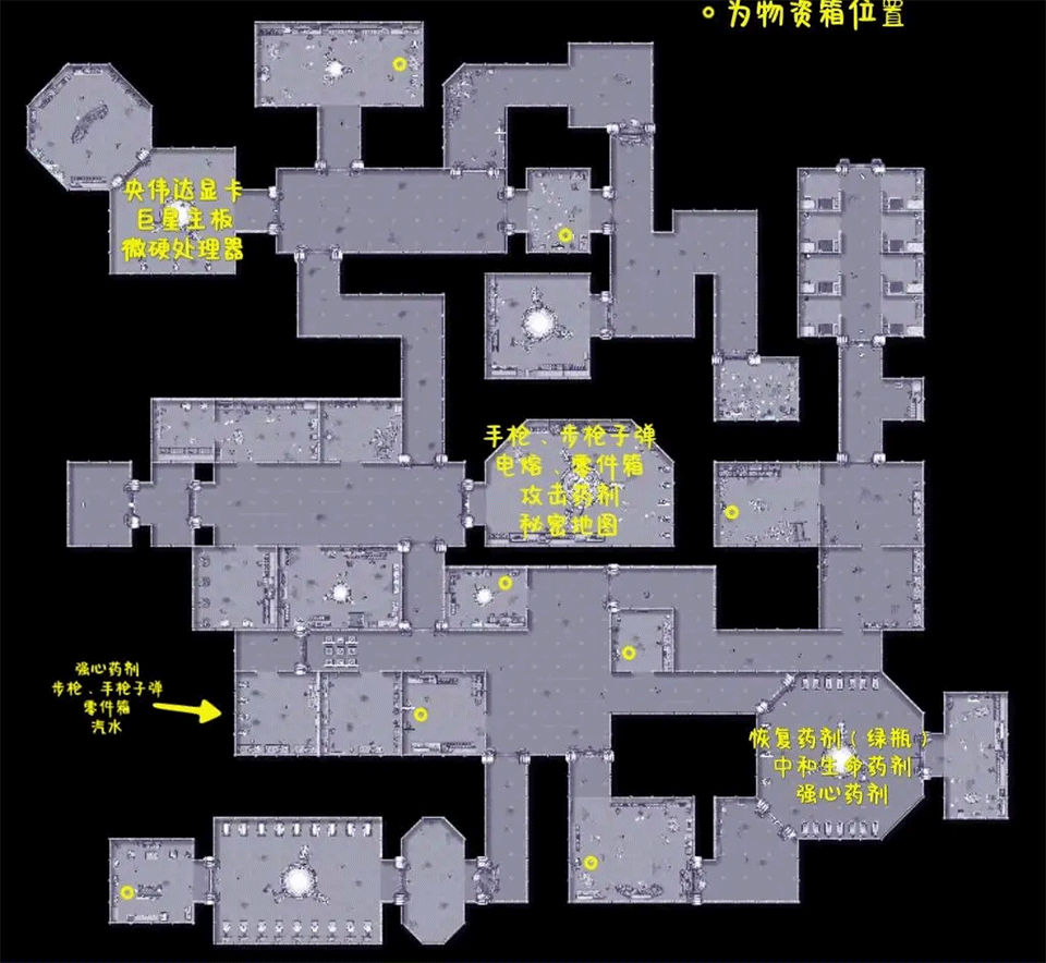 以上即为各主要大门所需身份卡的对应区域。完成钥匙卡收集后,建议顺势探索地图中的物资箱与补给点。这些资源点通常与主线推进路线自然衔接,顺路搜集可显著提升整体探索效率。