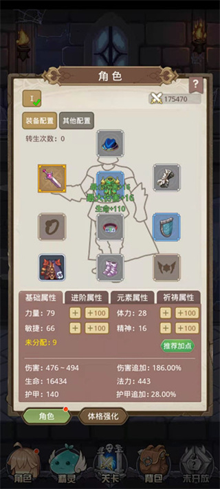 新手阶段建议直接使用系统“推荐加点”功能,通常采用力量与敏捷1:1分配,兼顾输出与命中。进入中期后,推荐优先加点力量,因其同时提升生命与伤害,有助于加快推图节奏与等级成长。至后期阶段,则可根据个人玩法偏好灵活调整,如偏重生存可加体力,专注法系输出则侧重精神。