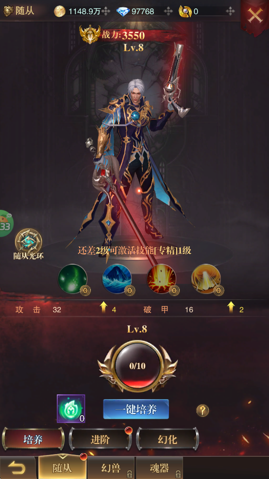 1. 消耗“随从培养精华”可提升培养经验;