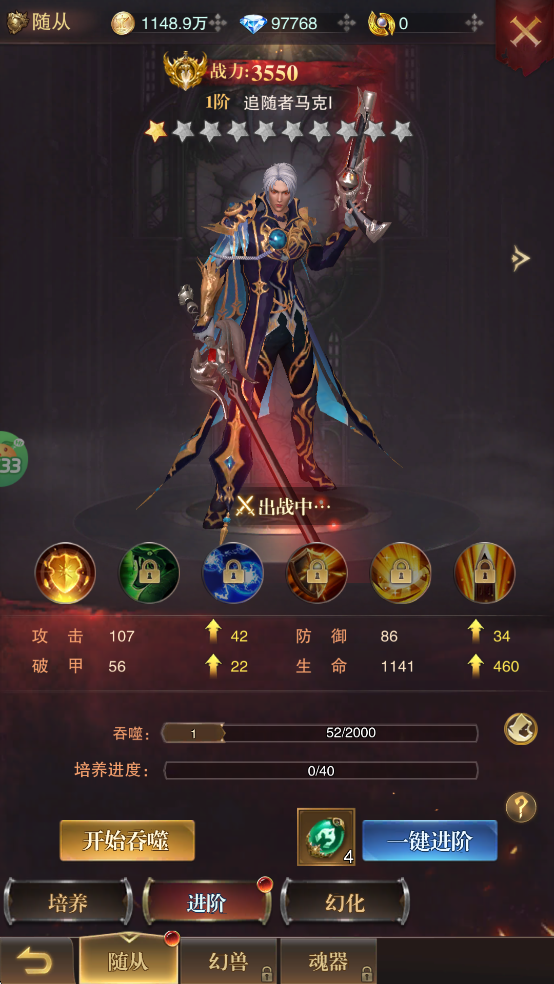 消耗“随从进阶精华”可积累进阶进度,进度满后成功升星。随从总战力将计入全服排行榜,所有已激活的随从均纳入战力计算,助力你登顶强者之巅。