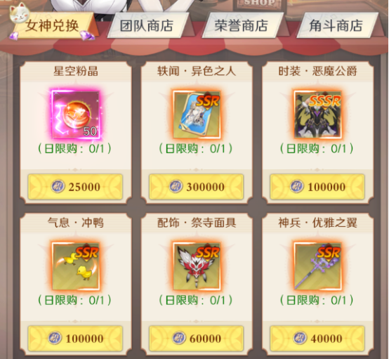 活动所获积分可在女神商店中兑换稀有道具与限定奖励,助力角色快速成长。