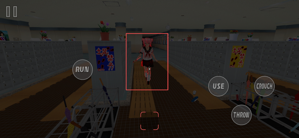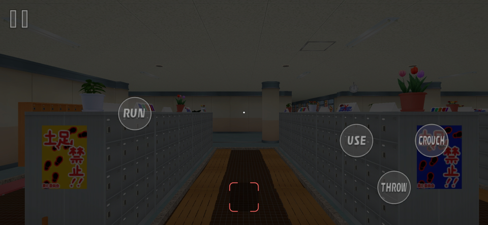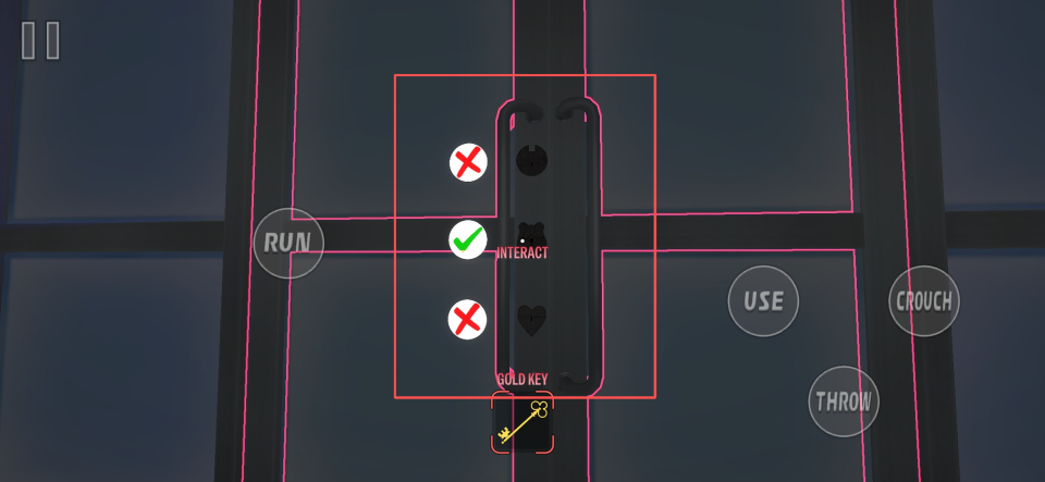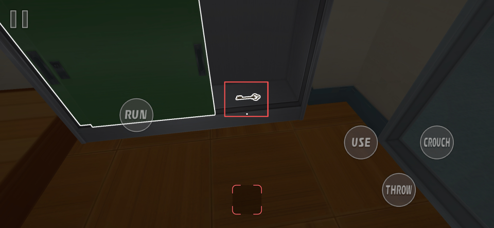 2、进入关卡后,使用左下角虚拟摇杆控制角色移动;左侧【Run】按钮用于加速奔跑,右侧依次为【Use】(互动)、【Crouch】(下蹲)和【Throw】(投掷)功能键。