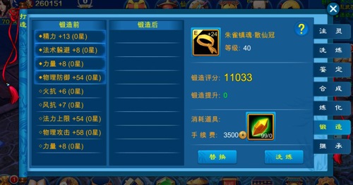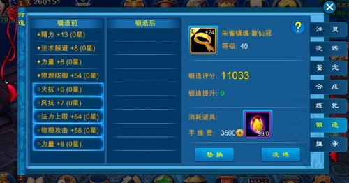 若对装备中带有空心菱形标识的附加属性不满意,可启用精炼功能。每次需消耗精炼石与铜钱。实心菱形属性固定不变,仅随机调整一条空心菱形属性,助你追求极致数值与完美搭配。