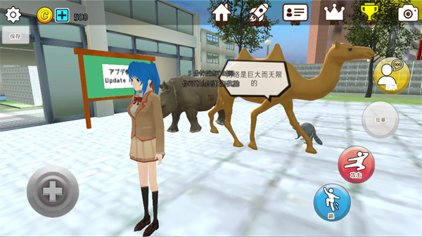 4. 进入校园后可自由探索,右侧设有【攻击】【跳跃】等基础操作按钮,同时系统会根据情境触发剧情提示。