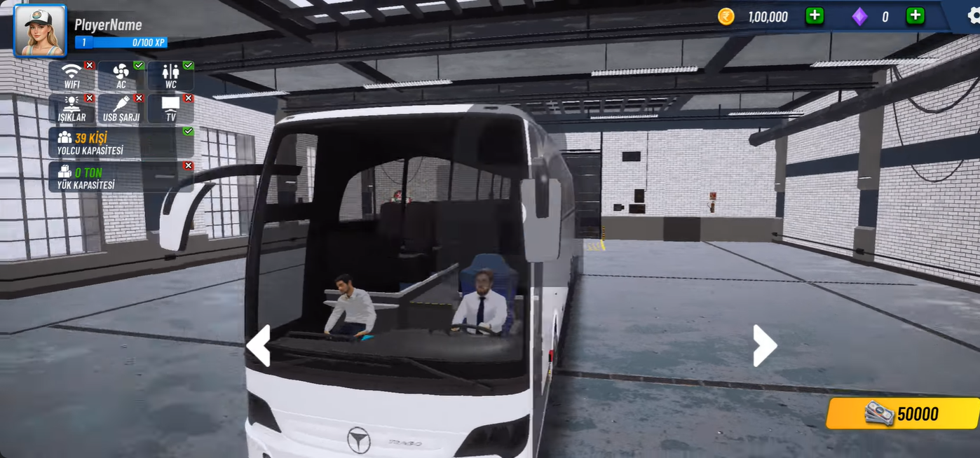 2、首页左下方设有车库入口,可在此调整巴士外观,并使用金币解锁更多车型。