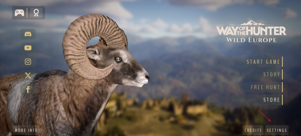 1、进入《猎人之路:狂野欧洲》主菜单后,点击右下角的【Settings】选项。