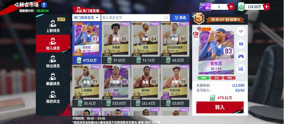 - 周末福利:周六/日12:00–14:00可无限转出部分球员;活动期间热门球员也可能临时解除转出限制。