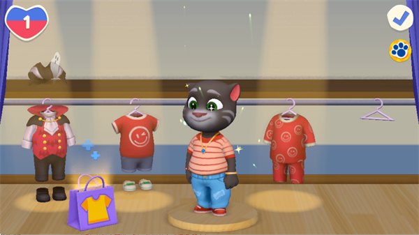 进入衣帽间,使用海量服饰为汤姆猫自由搭配造型。完成特定任务还可解锁“甜橙酷盖”等限定套装,展现独特时尚品味。