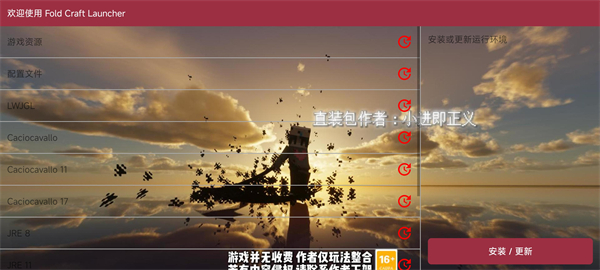 启动《我的世界瓦瓦战区2026最新版》,点击右侧【安装/更新】按钮,系统将自动完成游戏运行环境及模组资源的部署,为顺利进入战场做好准备。