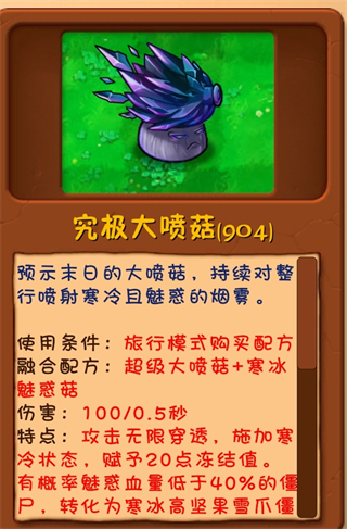 融合配方:超级大喷菇 + 寒冰魅惑菇
