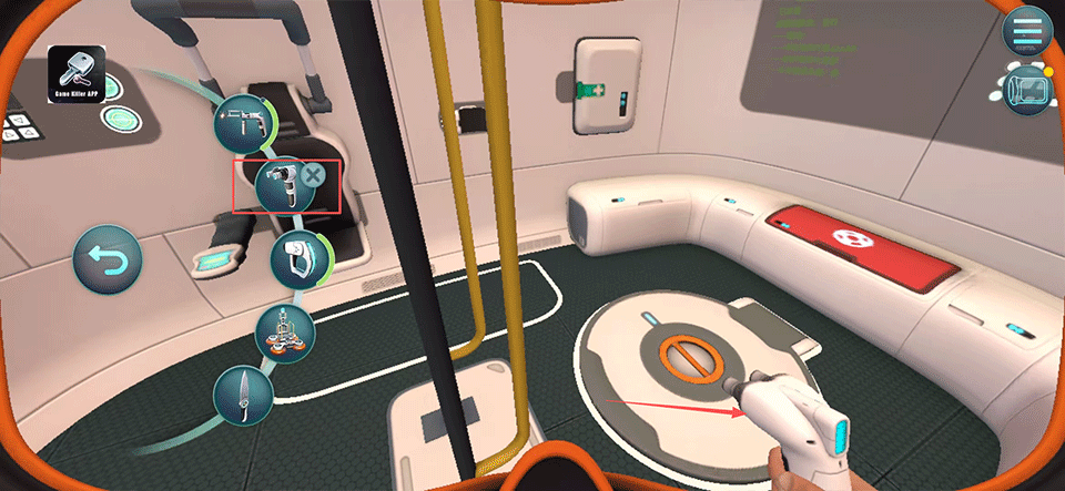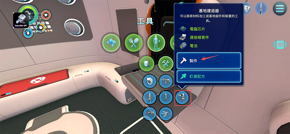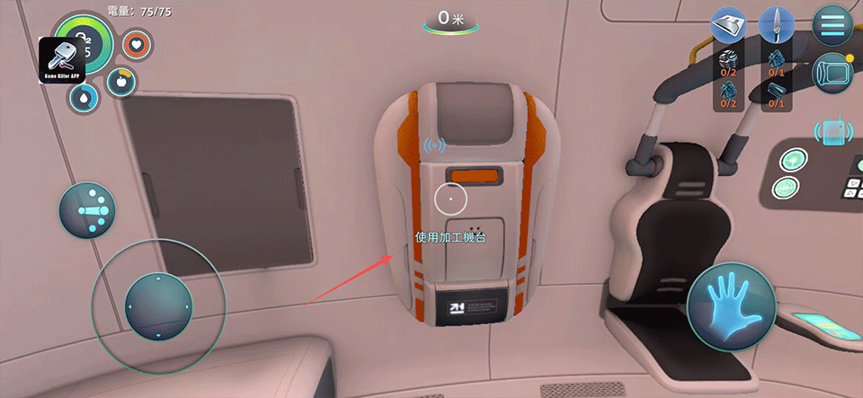 1、进入初始逃生舱后,点击互动按钮激活加工设备,为后续制作做好准备。